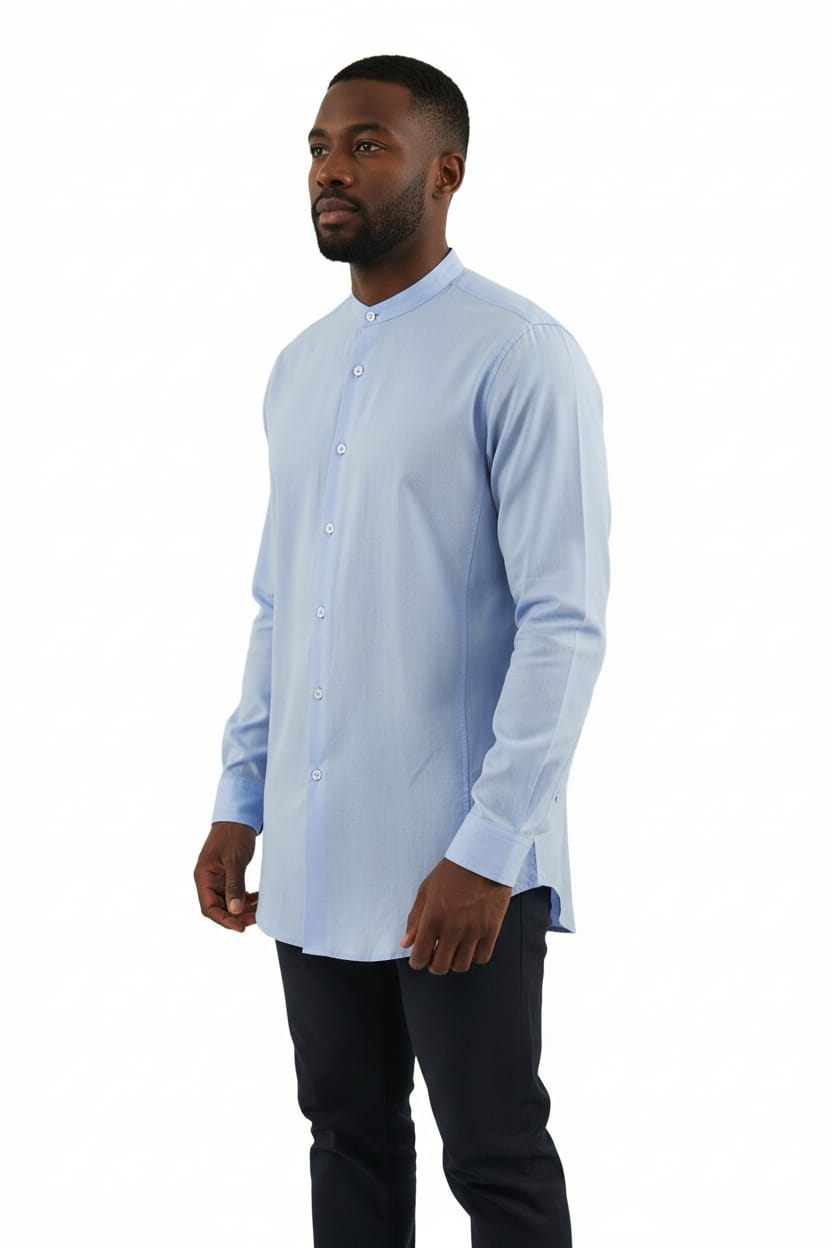 Neckline: A precision-cut Mandarin collar that provides a modern, upright structure.